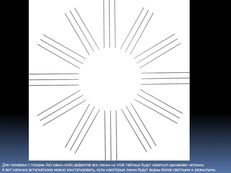 Слайд 6Для человека с глазами без каких-либо дефектов все линии на этой
