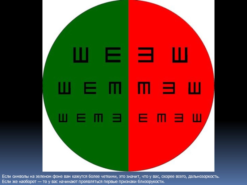 Слайд 2Если символы на зеленом фоне вам кажутся более четкими, это значит,