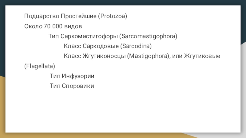 Подцарство Простейшие (Protozoa)Около 70 000 видов        Тип Саркомастигофоры (Sarcomastigophora)