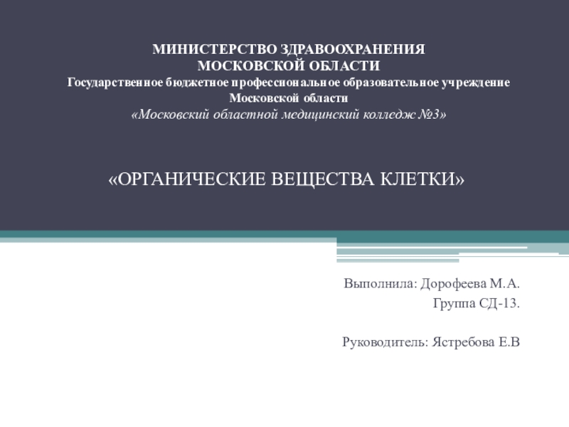 «ОРГАНИЧЕСКИЕ ВЕЩЕСТВА КЛЕТКИ»