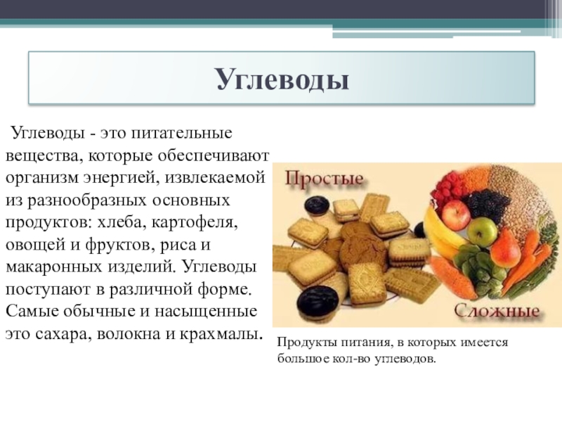 Продукты питания, в которых имеется большое кол-во углеводов.