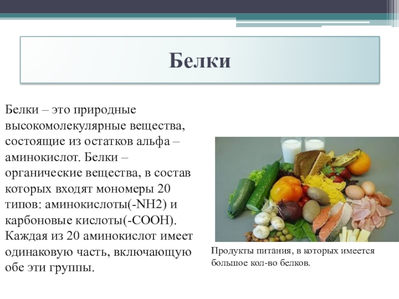 Продукты питания, в которых имеется большое кол-во белков.
