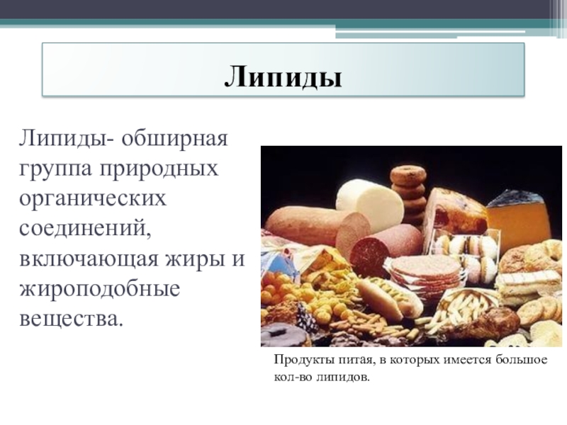Продукты питая, в которых имеется большое кол-во липидов.