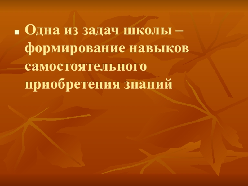 Слайд 3Одна из задач школы – формирование навыков самостоятельного приобретения знаний
