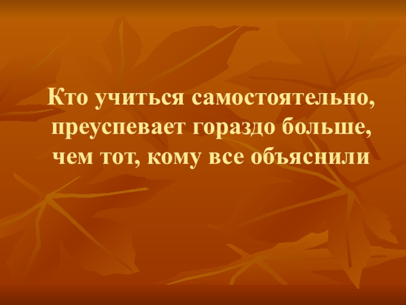Слайд 7Кто учиться самостоятельно, преуспевает гораздо больше, чем тот, кому все объяснили