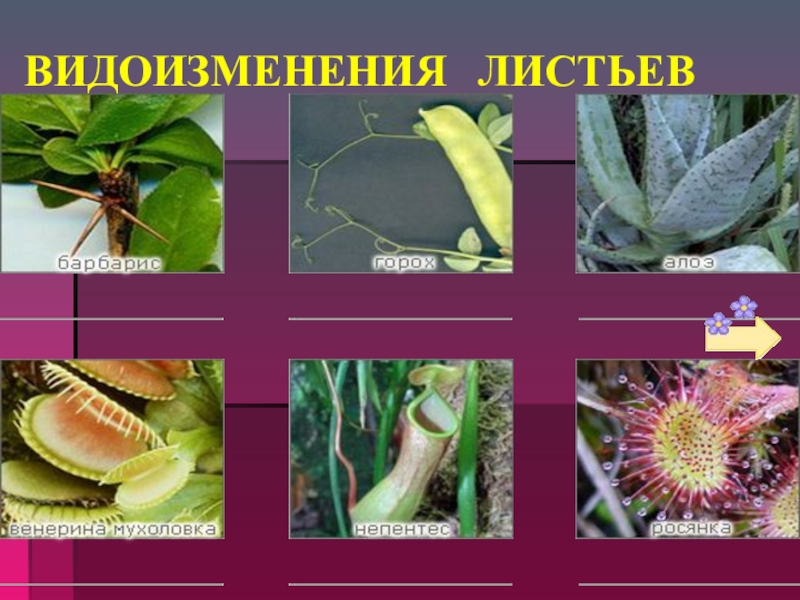 Слайд 21ВИДОИЗМЕНЕНИЯ ЛИСТЬЕВ