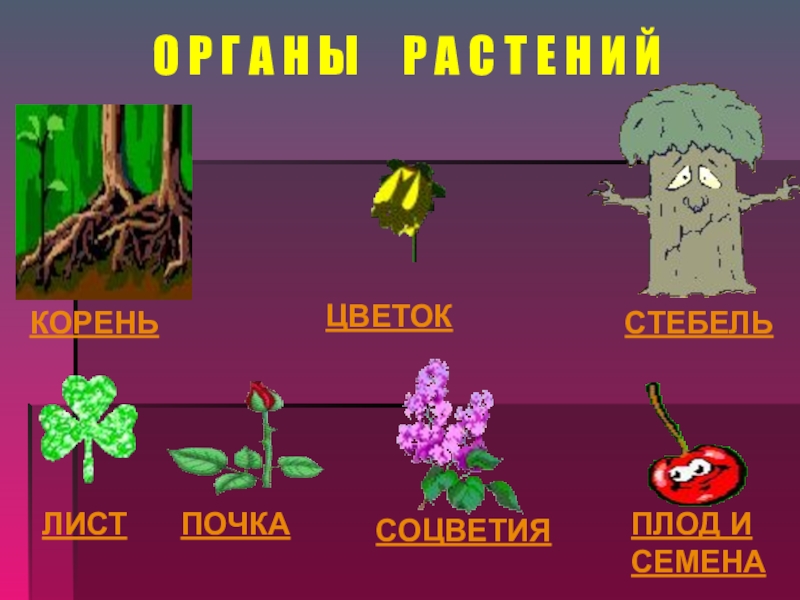 О Р Г А Н Ы   Р А С Т Е Н И ЙКОРЕНЬЛИСТСТЕБЕЛЬЦВЕТОКПЛОД И