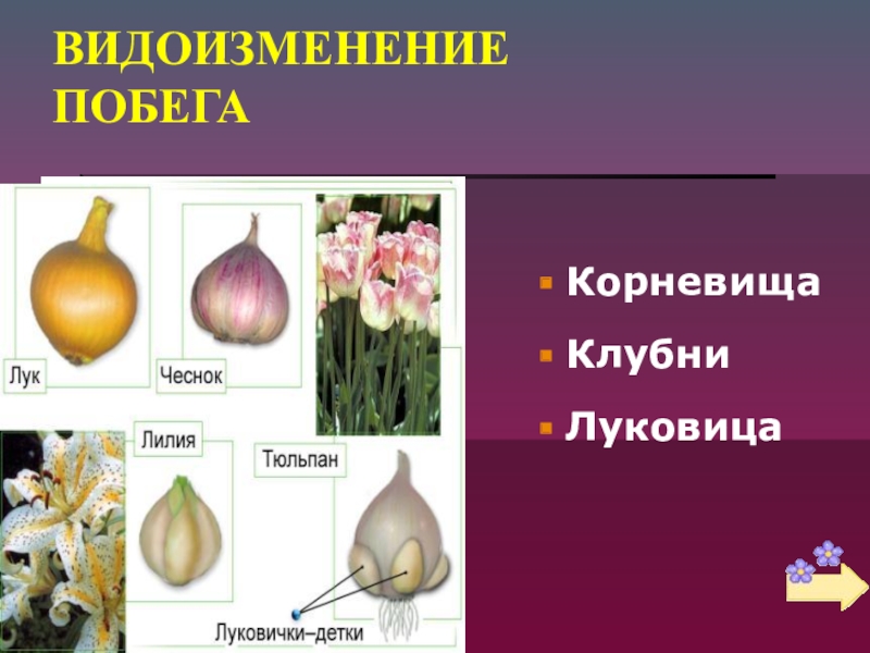 ВИДОИЗМЕНЕНИЕ  ПОБЕГАКорневищаКлубниЛуковица