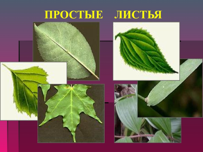Слайд 17ПРОСТЫЕ ЛИСТЬЯ