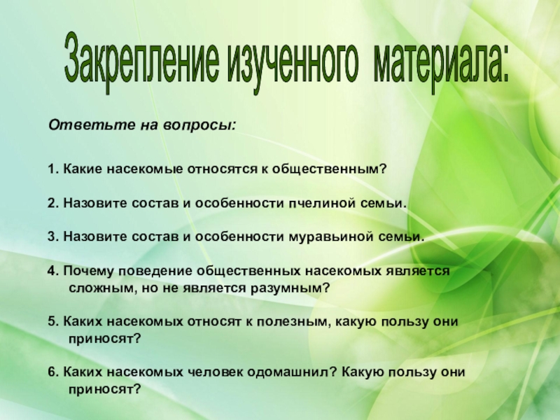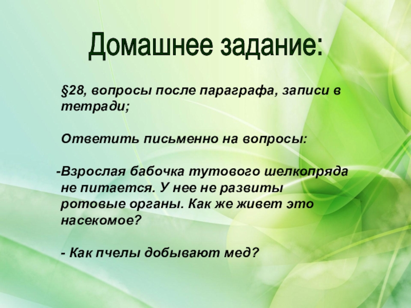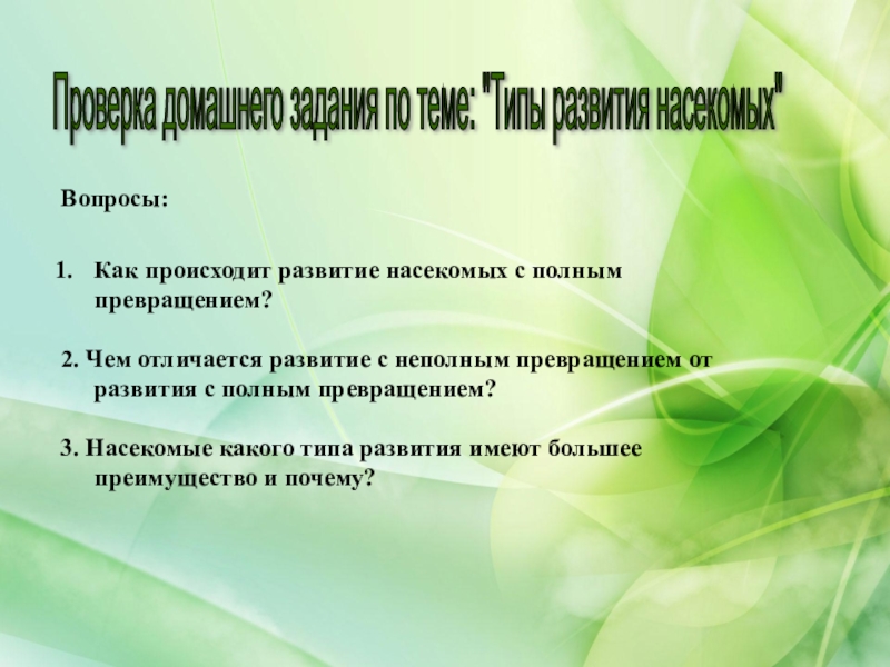 Проверка домашнего задания по теме: "Типы развития насекомых"