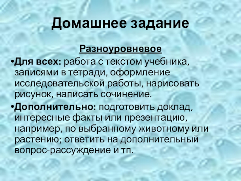 Дополнительно: подготовить доклад, интересные факты или презентацию, например, по выбранному животному или растению; ответить на дополнительный вопрос-рассуждение и тп.