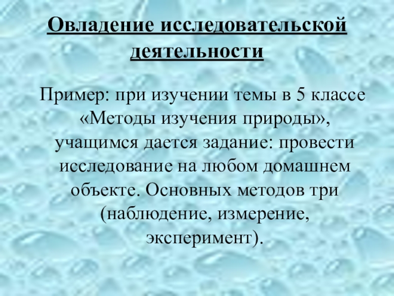 изучения природы», учащимся дается задание: провести исследование на любом домашнем объекте. Основных методов три (наблюдение, измерение, эксперимент).