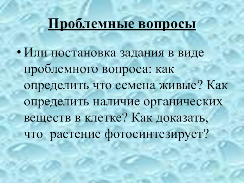 семена живые? Как определить наличие органических веществ в клетке? Как доказать, что растение фотосинтезирует?