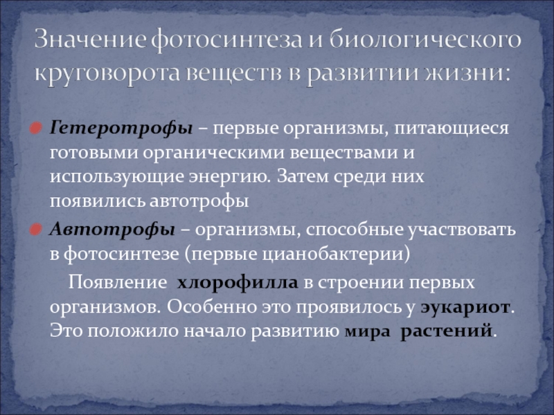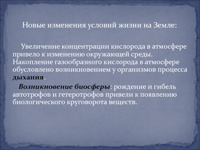 (2500-534 млн. лет назад) – расцвет эукариотных организмов. Появление многоклеточнос-ти и появление гетеротрофов и автотрофов.