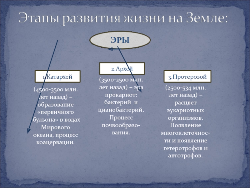 (3500-2500 млн. лет назад) – эра прокариот: бактерий и цианобактерий. Процесс почвообразо-вания.
