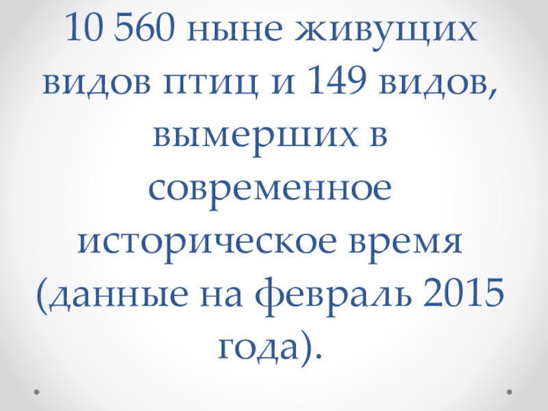 Слайд 2Класс Птицы включает 10 560 ныне живущих видов птиц и 149