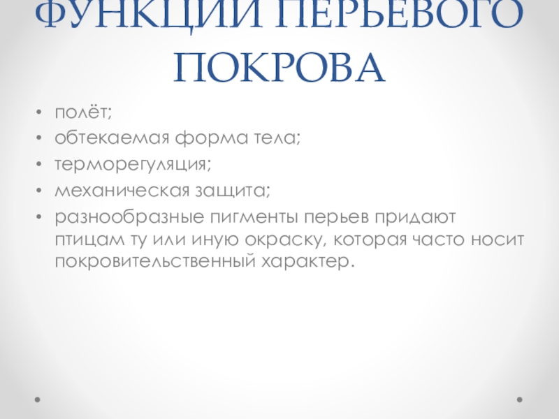Слайд 11ФУНКЦИИ ПЕРЬЕВОГО ПОКРОВА