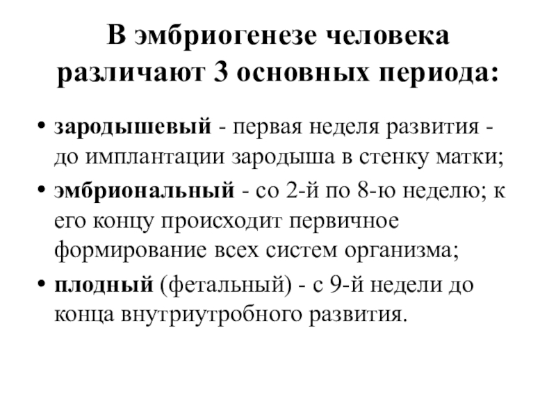 Слайд 8В эмбриогенезе человека различают 3 основных периода: