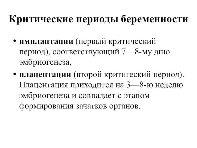 Слайд 10Критические периоды беременности