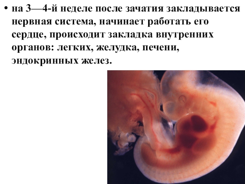 Слайд 11на 3—4-й неделе после зачатия закладывается нервная система, начинает работать его
