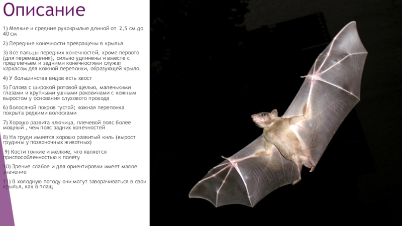 1) Мелкие и средние рукокрылые длиной от 2,5 см до 40