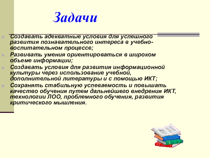 Это основной источник знаний для детей. Из книг ученик усваивает информацию и одновременно овладевает технологией усвоения этой информации. Книги обогащают словарный запас, развивают память, мышление, внимание; учат работать с рисунками, таблицами, делать выводы, выделять главное и второстепенное в тексте.