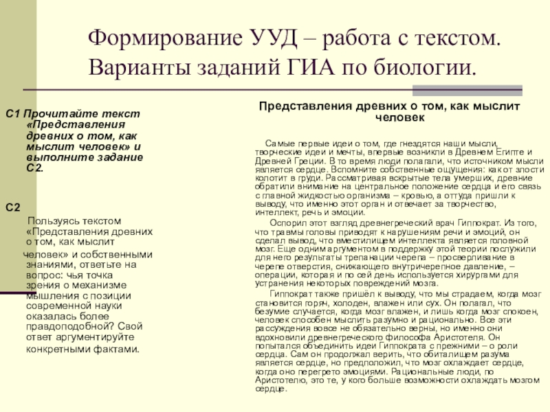 С1 Прочитайте текст «Представления древних о том, как мыслит человек» и выполните задание C2.