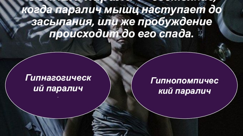 Слайд 18Со́нный парали́ч - состояние, когда паралич мышц наступает до засыпания, или же пробуждение происходит до