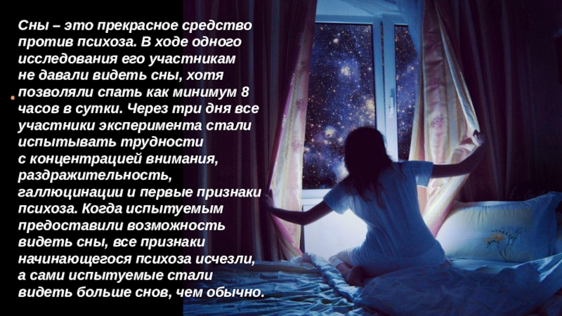 Слайд 21Ученые в ходе экспериментов смогли установить, что, если сон человека имеет