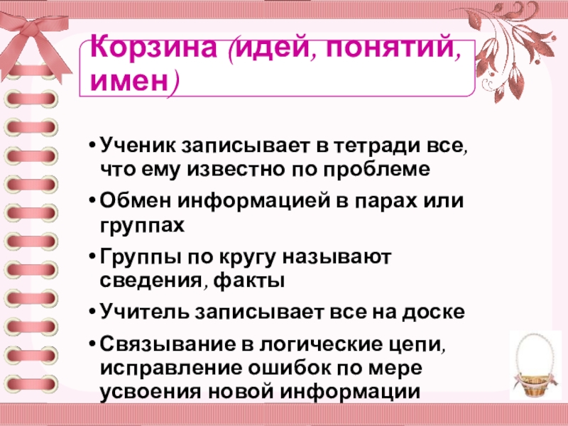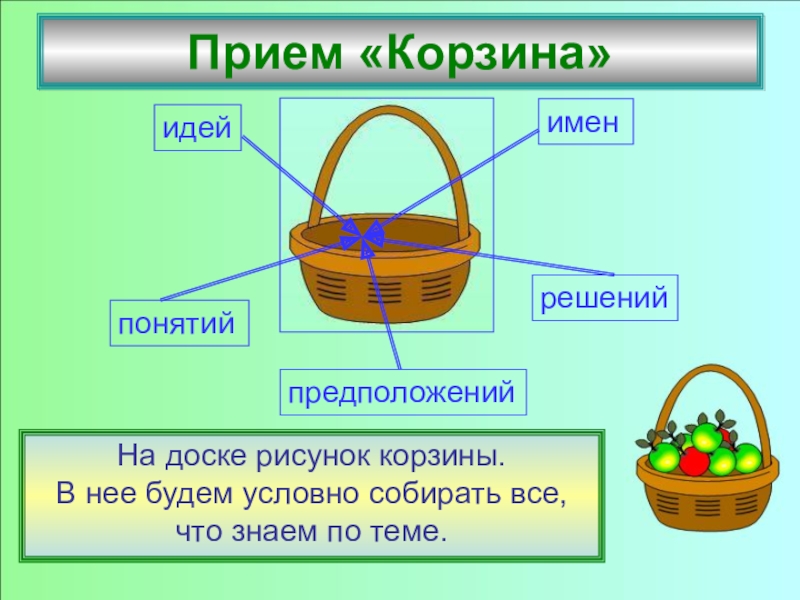 Слайд 9Корзина (идей, понятий, имен)
