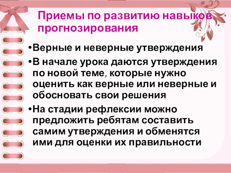 Слайд 35Приемы по развитию навыков прогнозирования