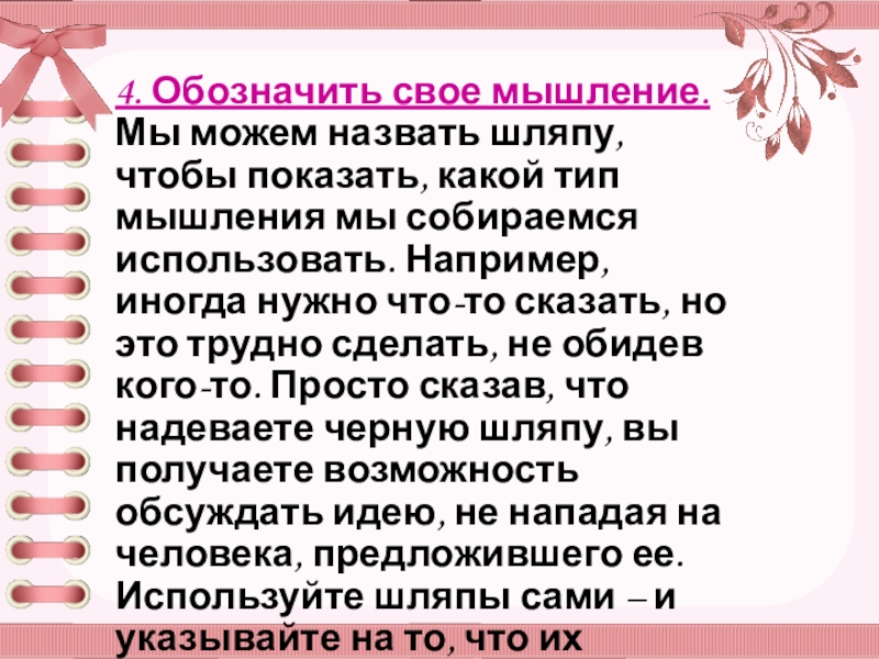 Слайд 494. Обозначить свое мышление. Мы можем назвать шляпу, чтобы показать, какой