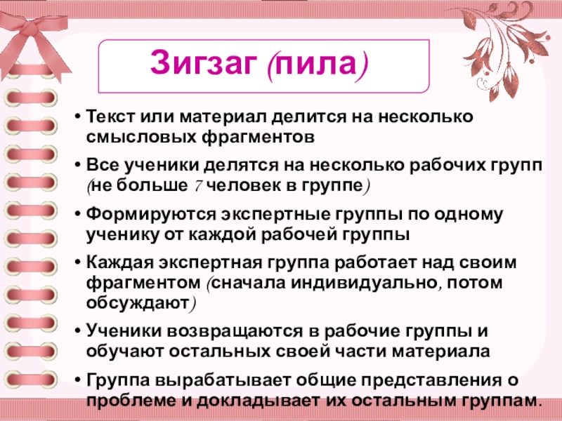 Ученики возвращаются в рабочие группы и обучают остальных своей части материала