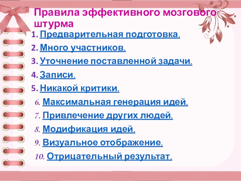 Слайд 17Правила эффективного мозгового штурма
