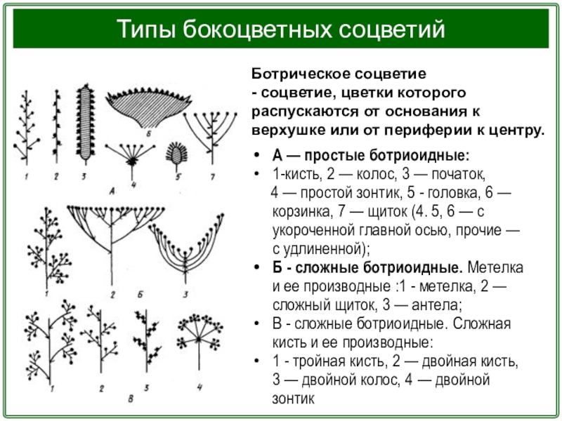 В - сложные ботриоидные. Сложная кисть и ее производные: