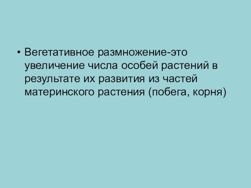 Слайд 2Вегетативное размножение-это увеличение числа особей растений в результате их развития из