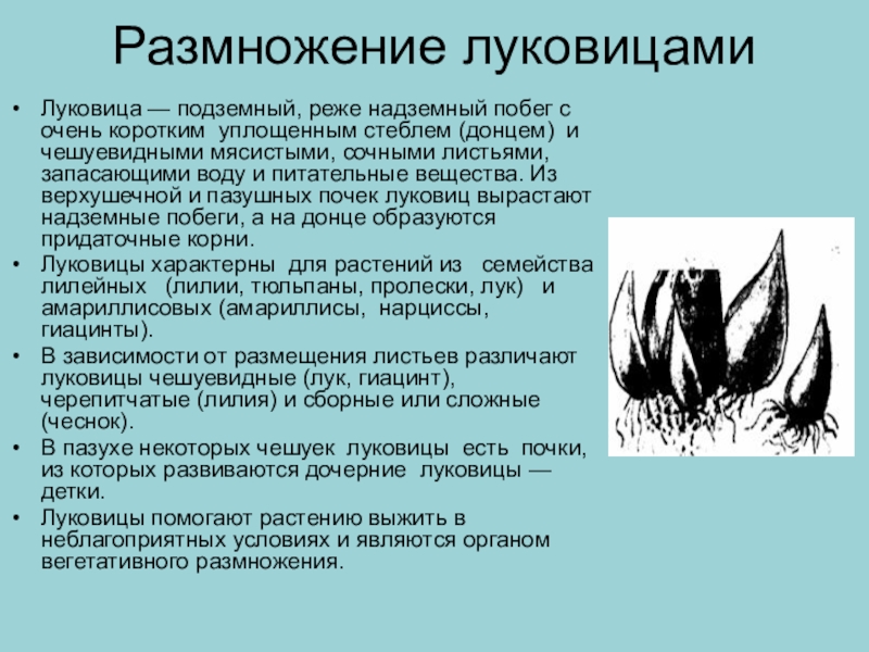 Луковицы помогают растению выжить в неблагоприятных условиях и являются органом вегетативного размножения.