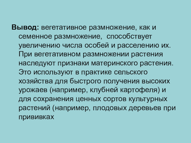 Вывод: вегетативное размножение, как и семенное размножение, способствует увеличению числа особей