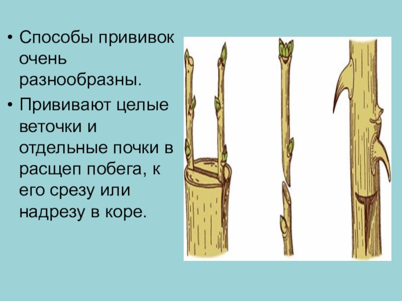 При прививках часть побега, называемую привоем, не укореняют, а приживляют к