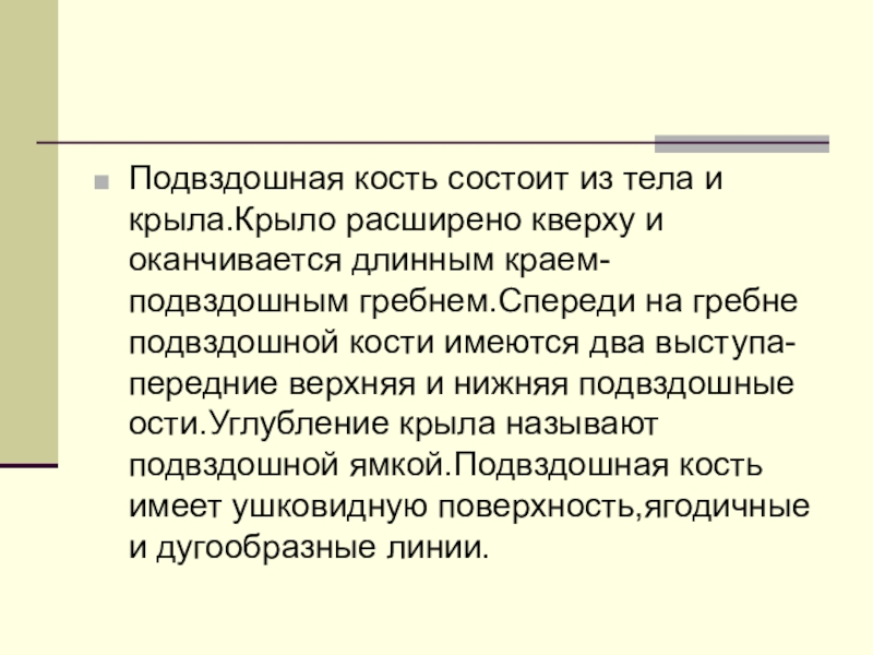 Слайд 25Подвздошная кость состоит из тела и крыла.Крыло расширено кверху и оканчивается