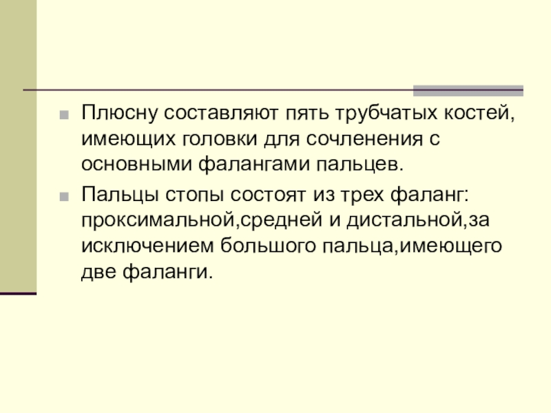 Слайд 39Плюсну составляют пять трубчатых костей,имеющих головки для сочленения с основными фалангами