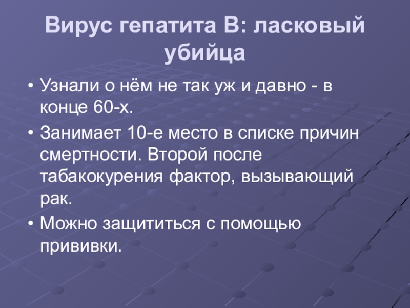 Вирус гепатита В: ласковый убийца Узнали о нём не так уж и давно - в конце 60-х.