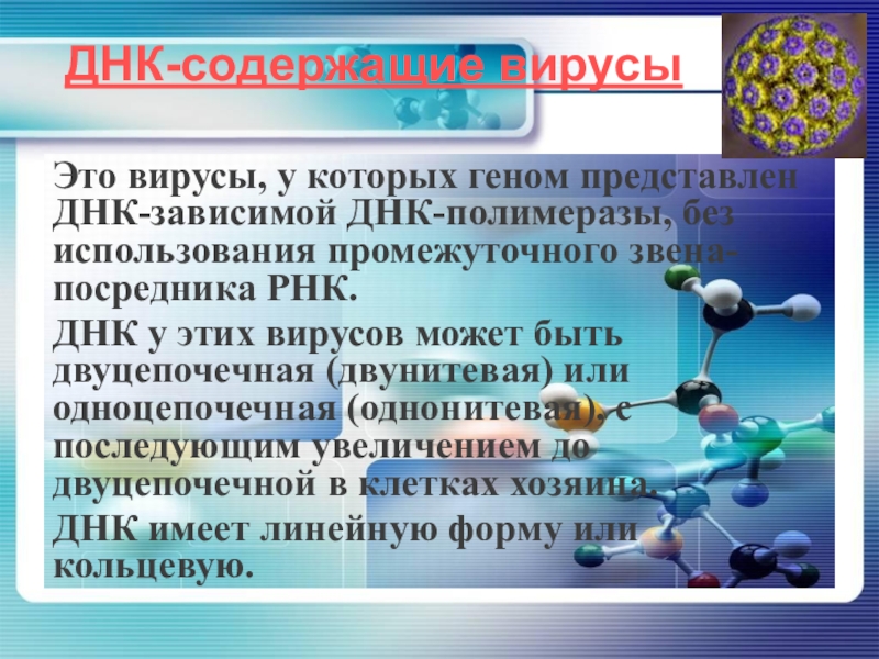 Это вирусы, у которых геном представлен ДНК-зависимой ДНК-полимеразы, без использования