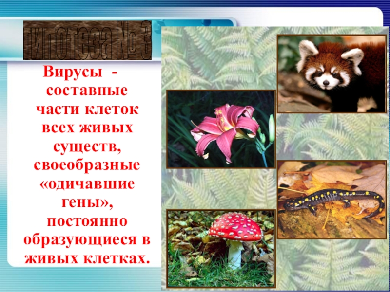 Слайд 7Вирусы -составные части клеток всех живых существ, своеобразные «одичавшие гены», постоянно