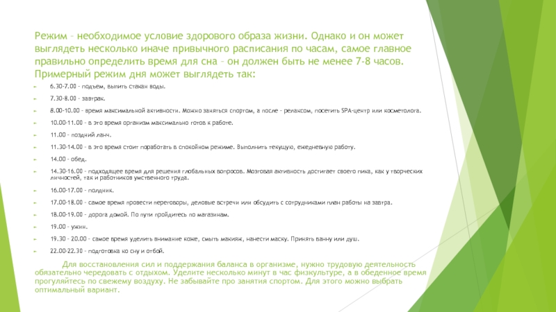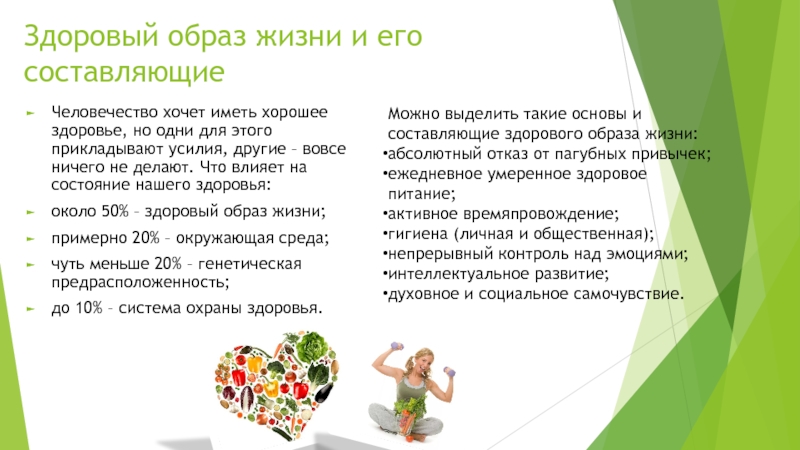 Можно выделить такие основы и составляющие здорового образа жизни: