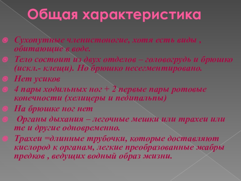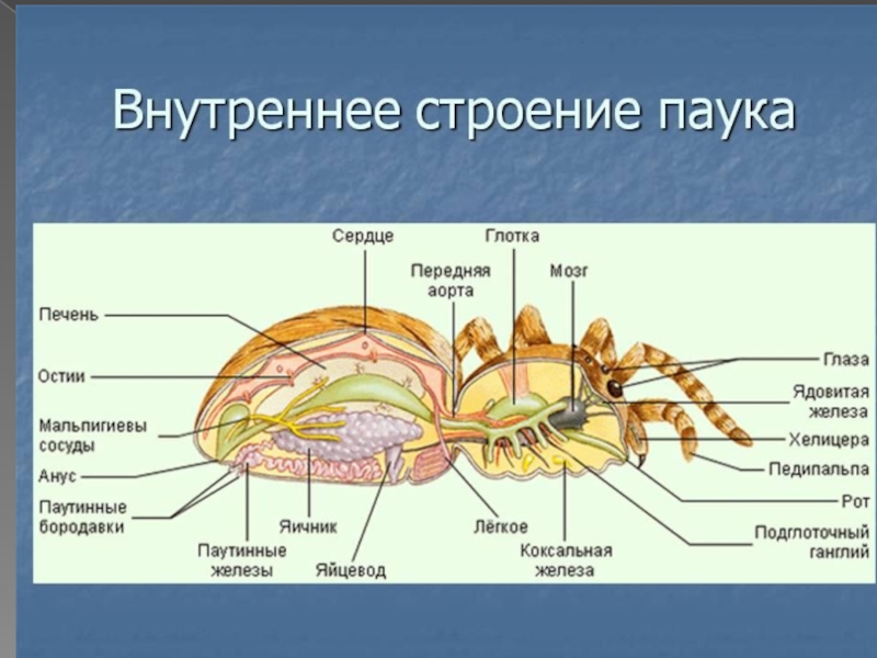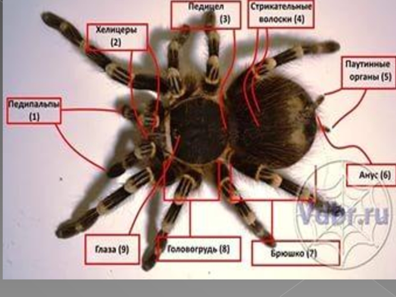 Слайд 28- Перечислите характерные признаки паукообразных?
