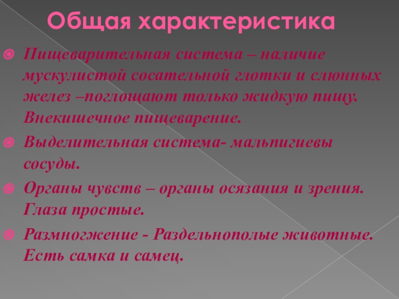 Пищеварительная система – наличие мускулистой сосательной глотки и слюнных