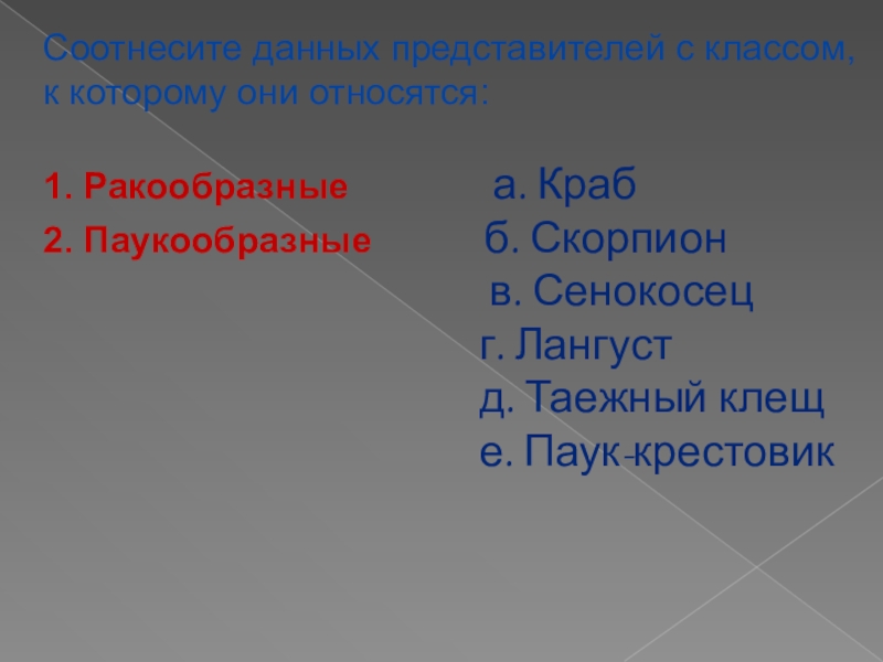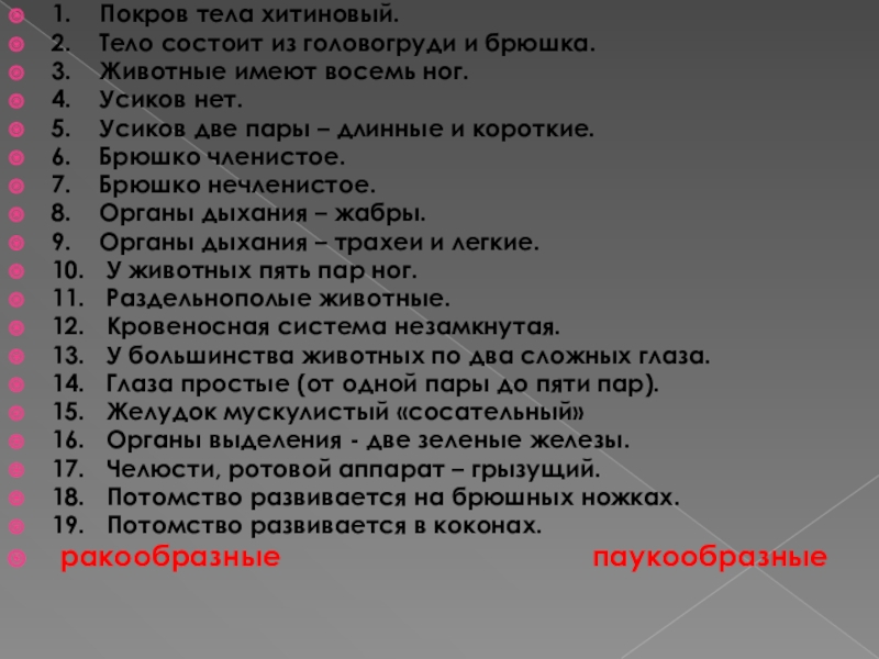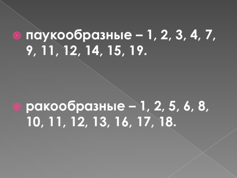Слайд 32паукообразные – 1, 2, 3, 4, 7, 9, 11, 12, 14,