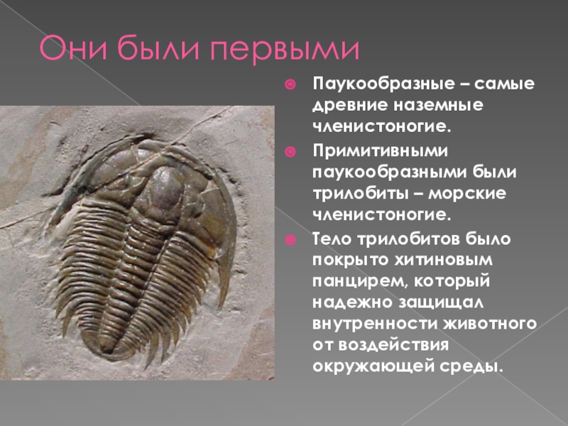 Тело трилобитов было покрыто хитиновым панцирем, который надежно защищал внутренности животного от воздействия окружающей среды.