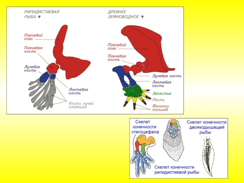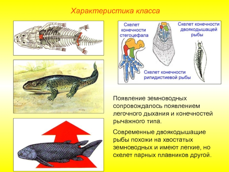 Появление земноводных сопровождалось появлением легочного дыхания и конечностей рычажного типа.
